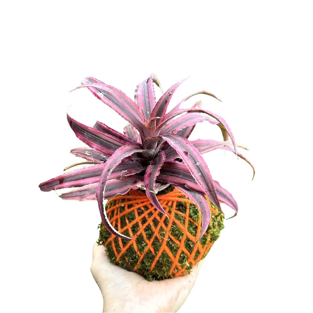 The Tradescantia plant, commonly known as Purple Spider Plant or Wandering Jew, is admired for its eye-catching purple, pink, and green striped foliage. This plant comes beautifully styled in a Kokedama moss ball, making it a trendy décor piece for modern interiors.